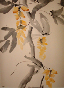 But times change, and nowadays, even though black has remained the most important colour in sumi-e paintings, artists may choose to use watercolours (ivory black) in stead of ink, and they may wish to use a limited number of colours.