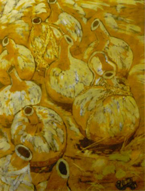 Van nature ben ik een ongeduldig mens. Het eindeloze geduld, dat nodig is om een ingewikkeld ontwerp goed te batikken, is voor mij een ware uitdaging.