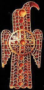 In the 3rd century AD, Celtic warriors adorned their harnasses, swords and shields with enamel. They used a form of the basse-taille technique, filling hollows in the bronze with coloured glass. (For more information about Celtic jewelery, click here.)