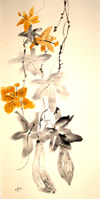 But times change, and nowadays, even though black has remained the most important colour in sumi-e paintings, artists may choose to use watercolours (ivory black) in stead of ink, and they may wish to use a limited number of colours.