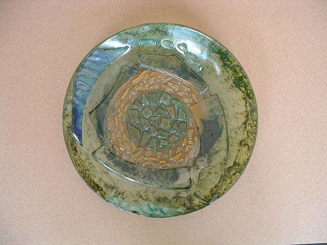 Geëmailleerd glas / Enamelled glass 'Gatenschaal'